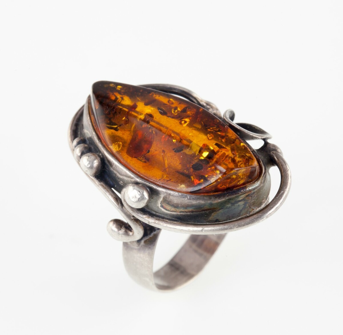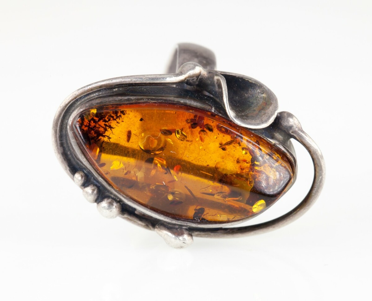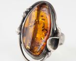 - Vintage Ladies Amber Sterling Silver Floral Ring Size 7