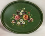 - Vintage Large Toleware Hand Painted Floral Metal Tray - 24x19.5”