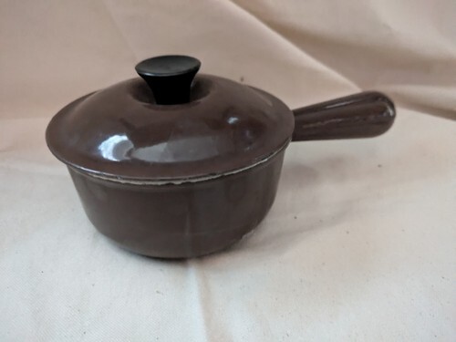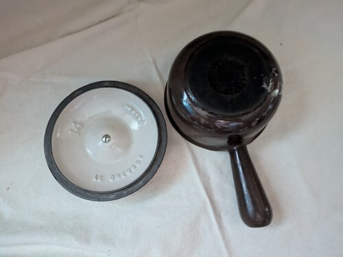 - Vintage Le Creuset 14 Brown Cast Iron Enamel Sauce Pot Pan Lid France 5.5
