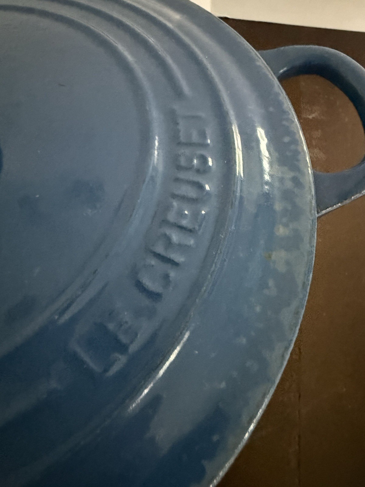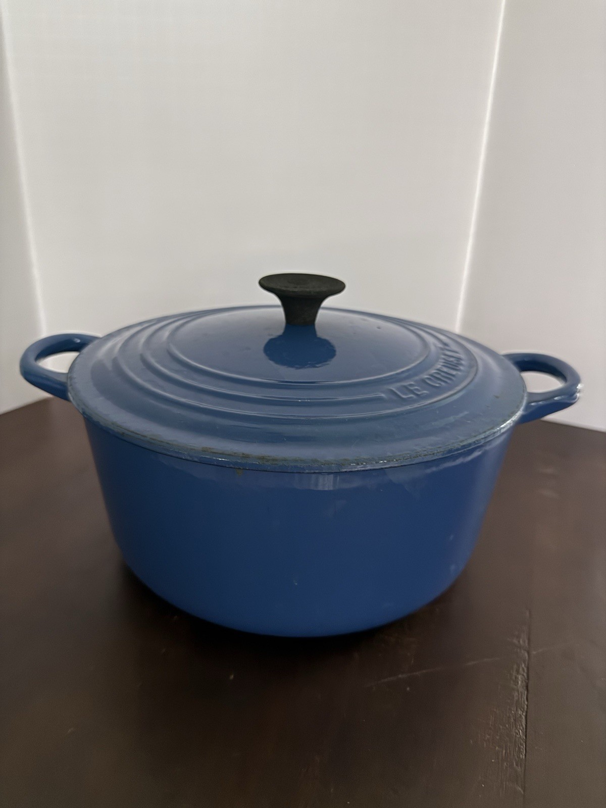 - Vintage Le Creuset Blue Enamel Dutch Oven 22 French Cast Iron 3.5 Qt