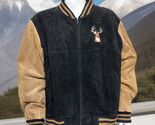 - Vintage Leather Jacket Mens XXL Embroidered Varsity Pig Suede Bomber Black Tan