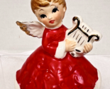 - Vintage Lefton Christmas Girl Angel Brunette w Harp Figurine 3 3/4" Japan 7074