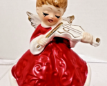 - Vintage Lefton Christmas Girl Angel Brunette w Violin Figurine 3 3/4" Japan 7074