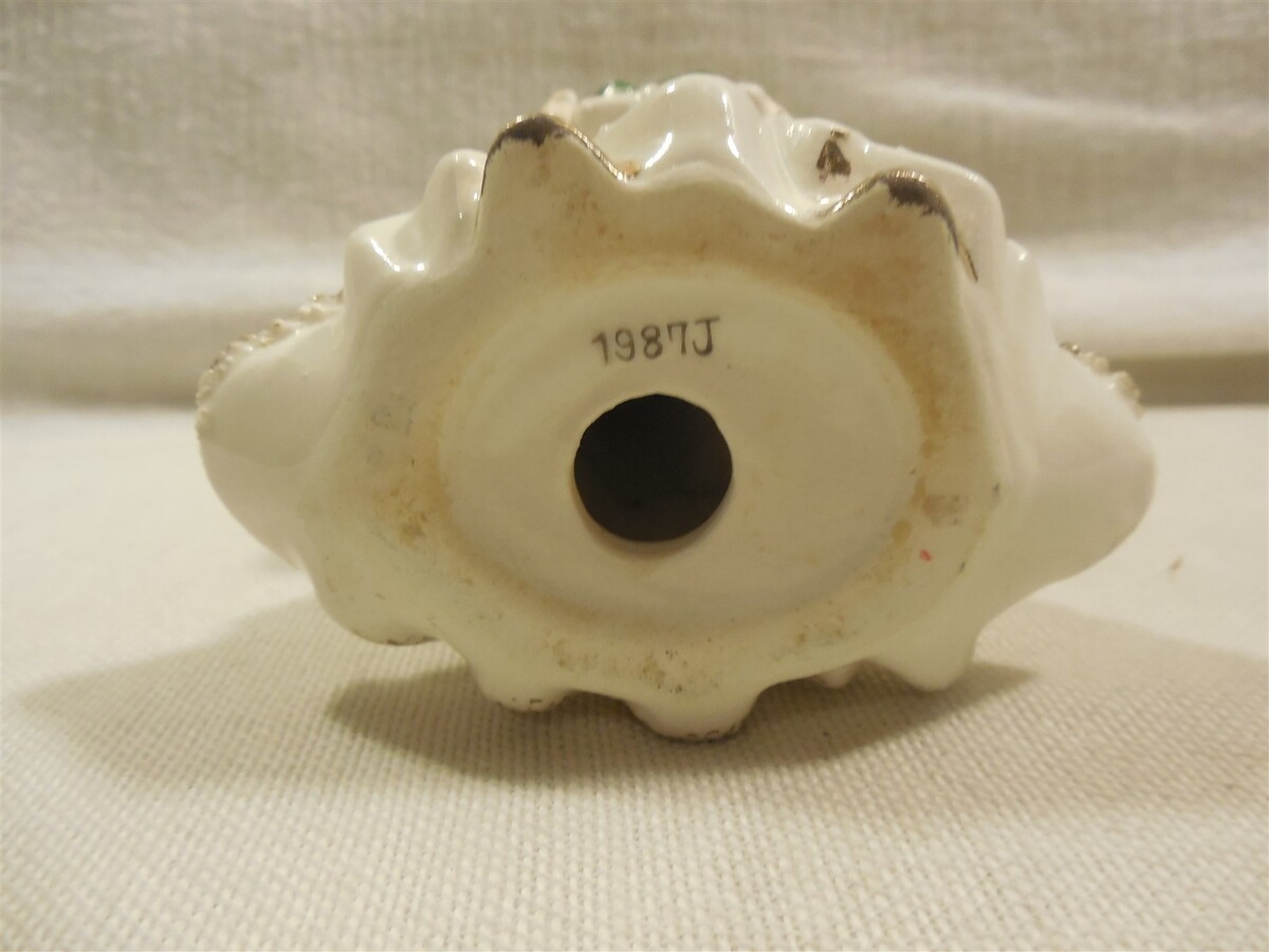 This is a vintage Lefton Japan Ceramic Christmas December Angel Girl figurine (1987J). The angel is super cute holding a Christmas gift and rhinestones on her dress. Unfortunately, she is missing the rhinestone star on the top of her head (see pic #8). The front base of the dress is marked December in gold raised letters. The bottom of the figurine is marked 1987J. The figurine measures approximately 4 1/2" tall and 3 1/4" wide (at the base). Nice clean cute Lefton Japan ceramic Christmas December angel girl figurine that displays absolutely great when sitting on a shelf!