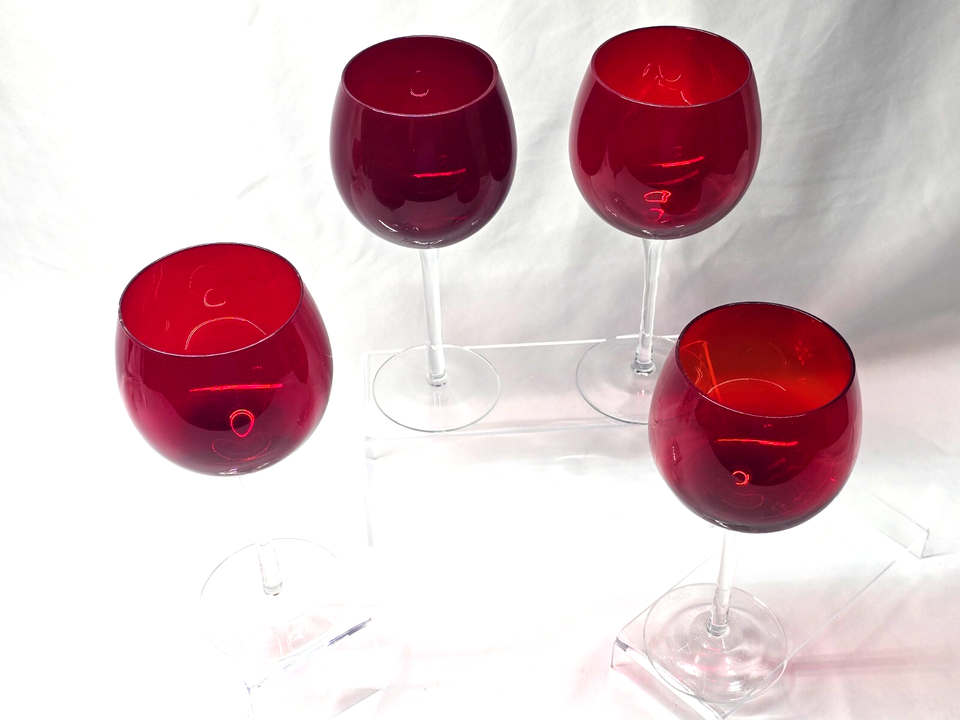 - Vintage LENOX 8.5" Balloon Wine Stem Glass HOLIDAY GEMS Ruby Red - Set Of 4