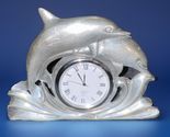 The frame material is made of pewter and the clock is powered by batteries. This table and shelf clock is perfect for those who appreciate the beauty of dolphins and want to add a touch of sophistication to their home. Get this unique and stylish clock today!