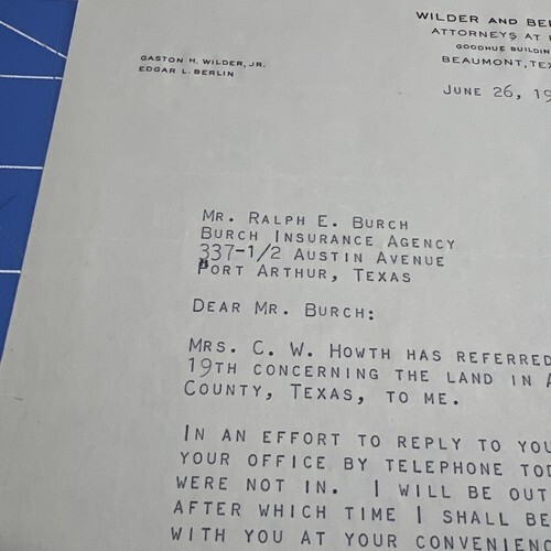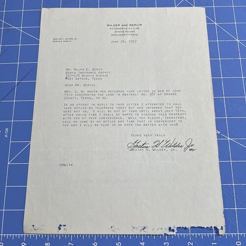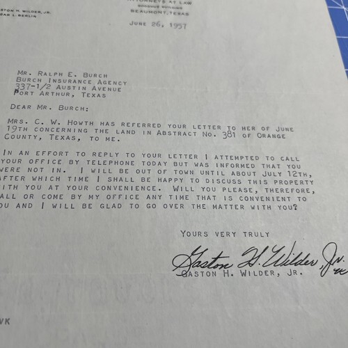 - Vintage Letters Beaumont Texas Wilder & Berlin Attorney Gaston H Wilder Jr 1957