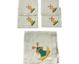 Vintage Linen Tablecloth + 4 Napkins Dutch Windmill 33" x 33"