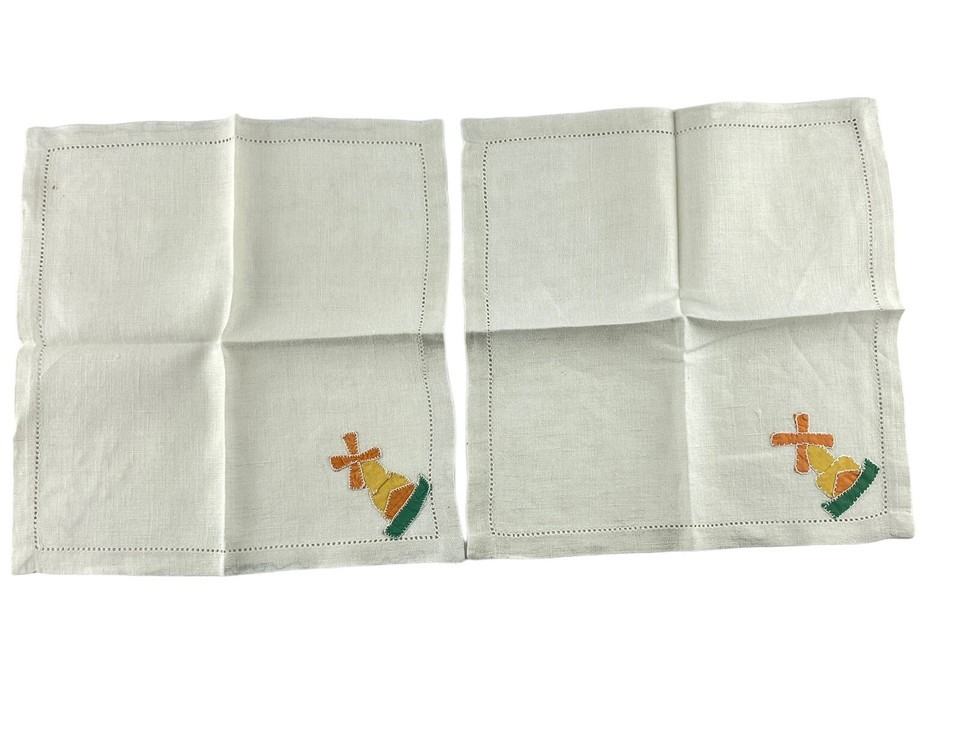- Vintage Linen Tablecloth + 4 Napkins Dutch Windmill 33" x 33"