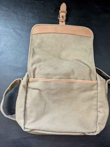 - Vintage Ll Haricot Beige Toile Boucle Cuir Bandoulière Sac 11 x 3 x 9