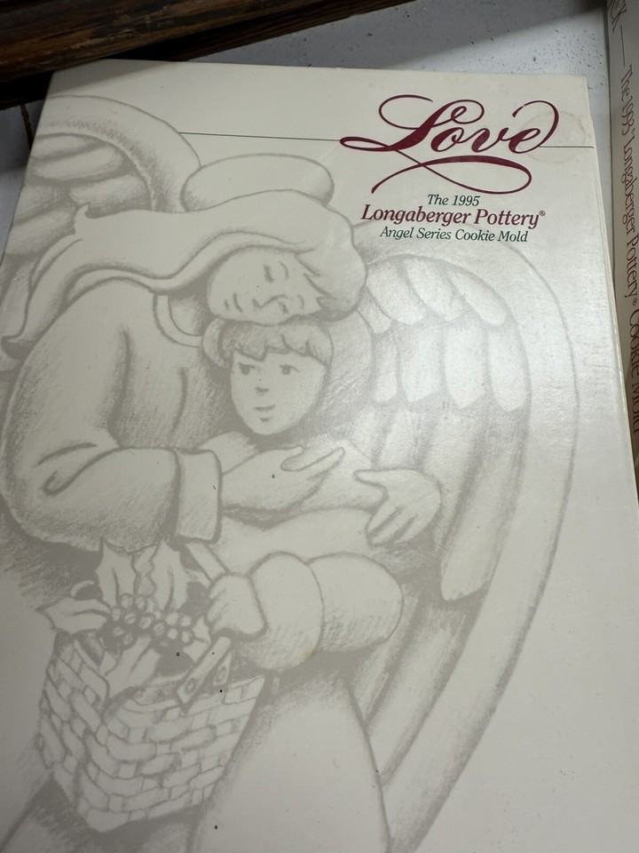 - Vintage Longaberger Pottery Angel Series Cookie Mold Joy 1996 Never Used 3PC SET