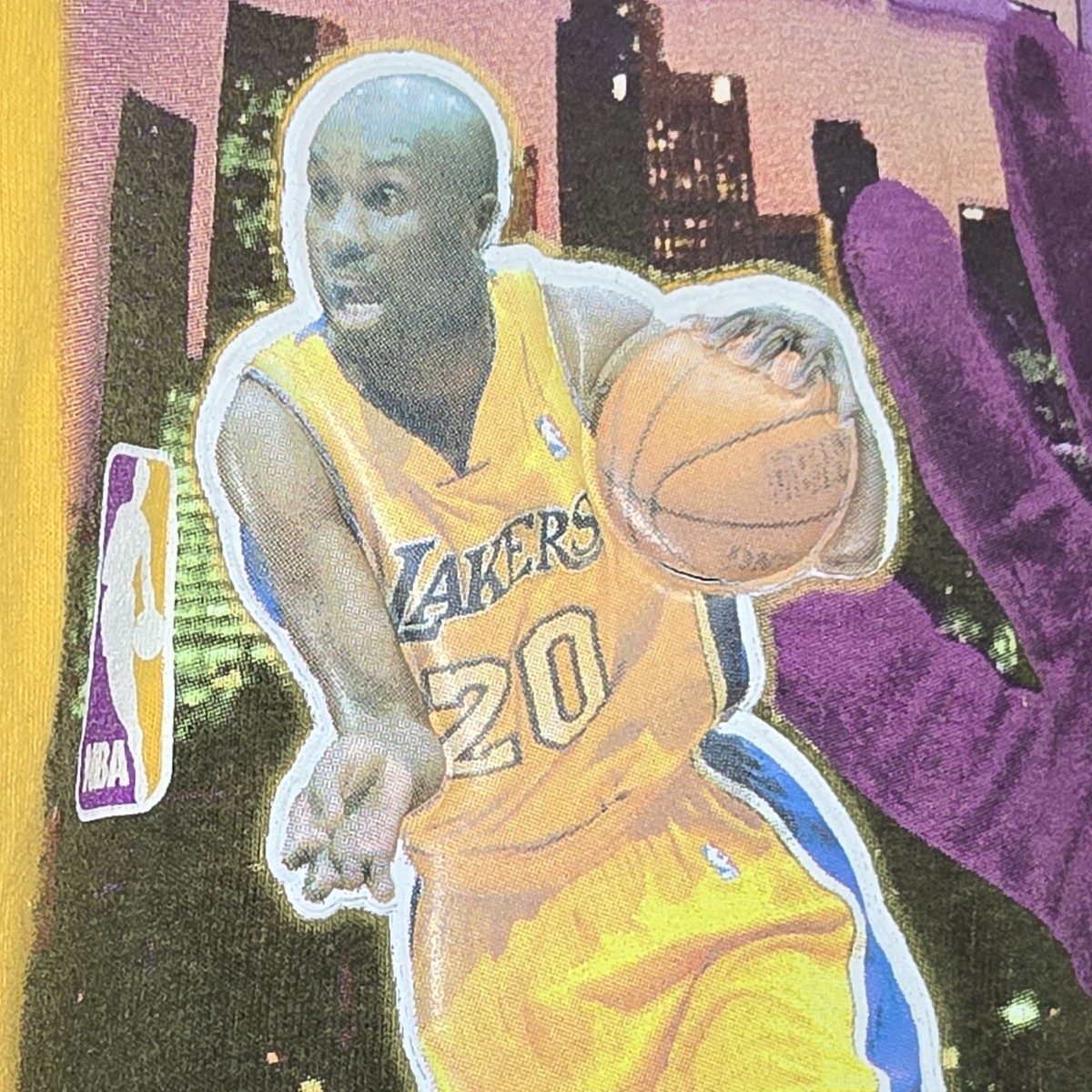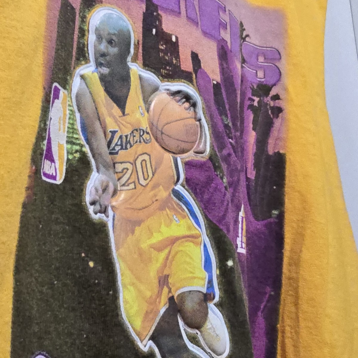 Great pre-owned Condition Vintage Y2K Yellow Los Angelos Lakers Gary Payton Shirt with (homemade) Cutoff Sleeves - Men's Size M. Actual measurements: 43" chest, 30" length.