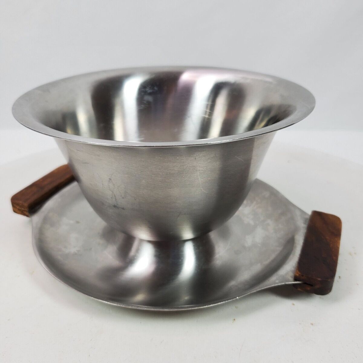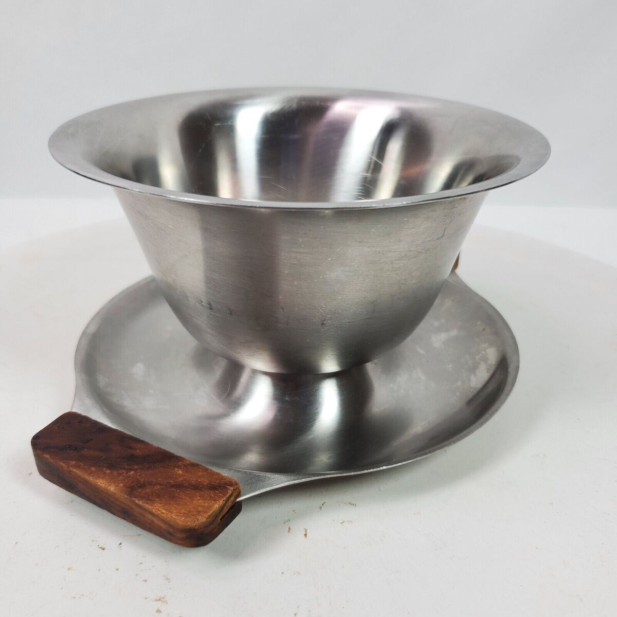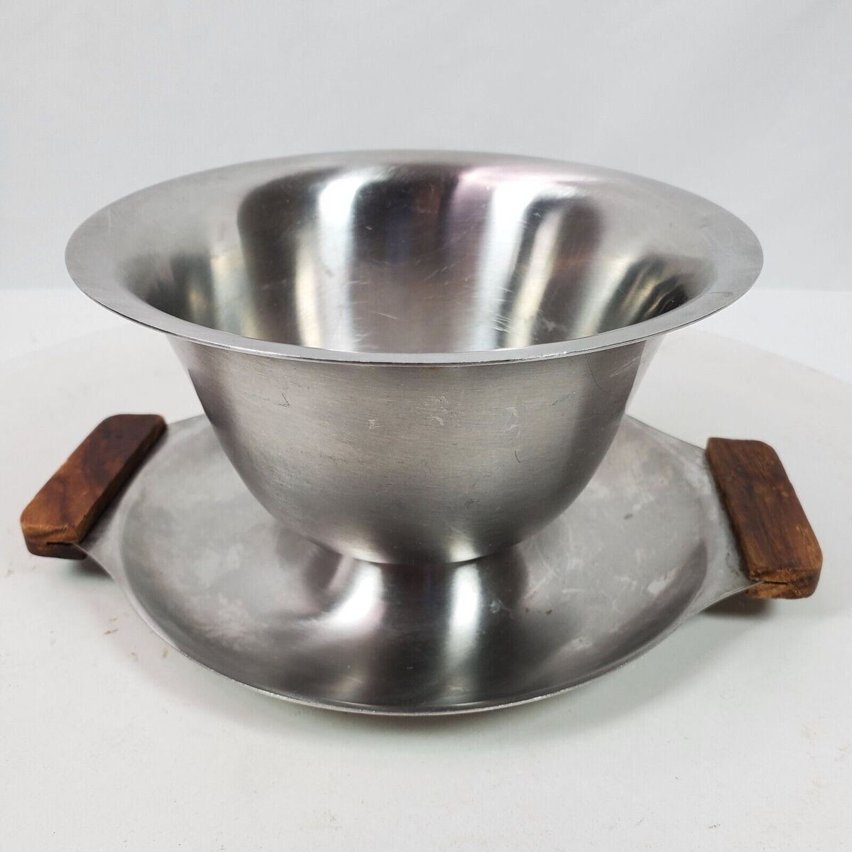 - Vintage MCM Gravy Boat Wood Handles Interpur Japan Vintage Stainless Steel