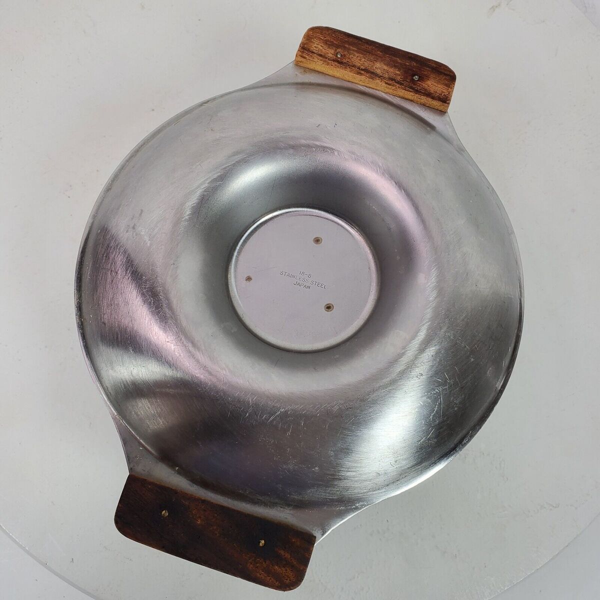 Vintage MCM Gravy Boat Wood Handles Interpur Japan Vintage Stainless Steel