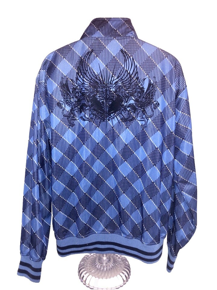 The jacket boasts a unique argyle/diamond pattern that lends a touch of sophistication to casual outings, cocktail parties, or travel adventures. Functional features, including pockets for convenience and a microfiber fabric construction for durability, make this piece an ideal choice for those who appreciate both form and function in their attire.