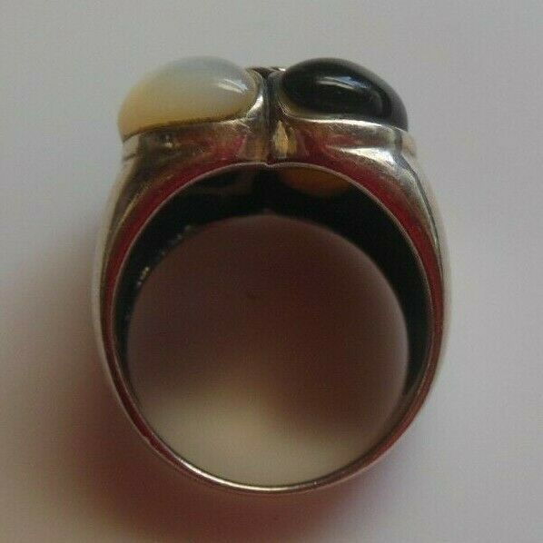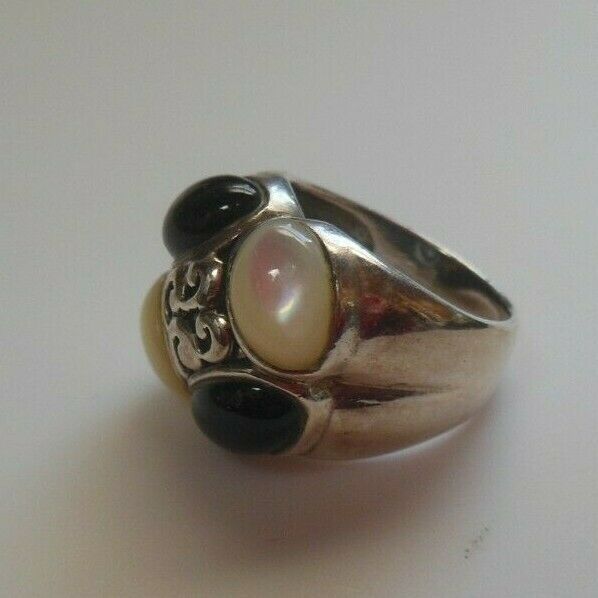 Vintage MOP & Black Cabochon Dome Ring Size 9