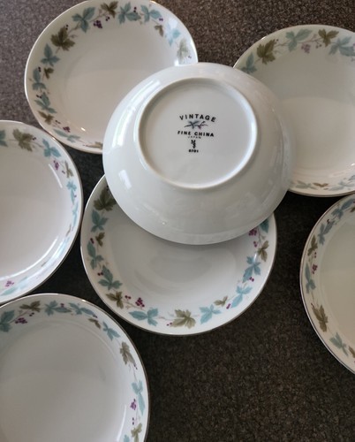 - Vintage MSI Fine China Japan 6701~ Seven (7) Bowls ~ Grape Vine Design on White