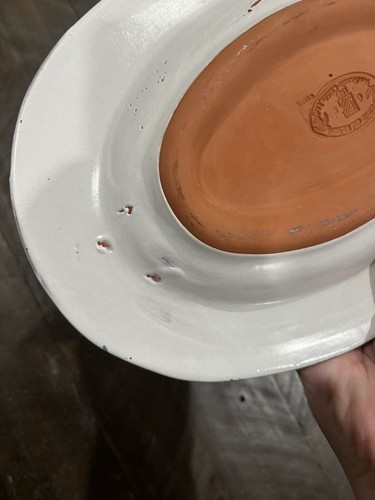 This beautiful vintage MacKenzie-Childs Victoria Richard Oval Platter is a rare find and a true collector's item. With its colorful and intricate design, this platter is sure to add a touch of elegance to any table setting. Crafted from high-quality clay and handmade with care, this platter is not only a work of art but also a functional piece of dinnerware.