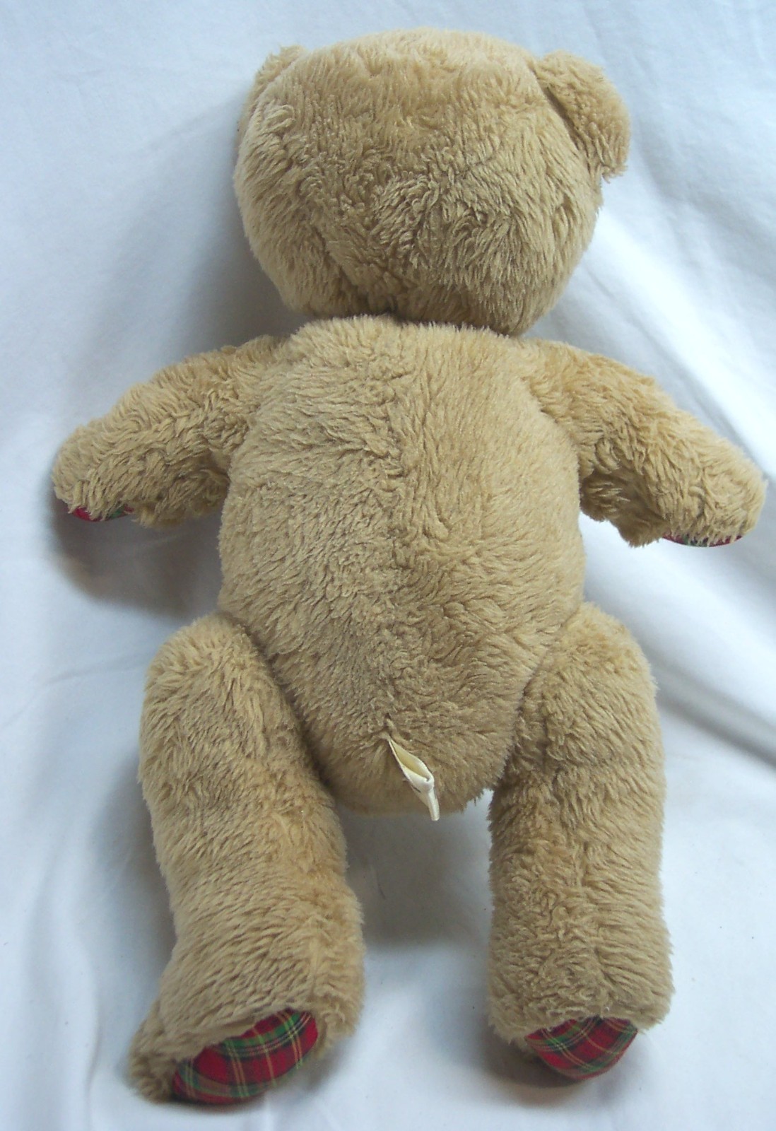 VINTAGE Macy's BROWN TEDDY BEAR W/ PLAID PAWS 15" Plush STUFFED ANIMAL TOY
