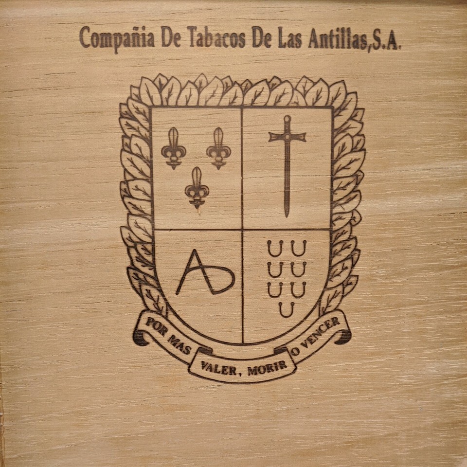 - Vintage Maduro Compania De Tabacos De Las Antillas Wood Box With Sword Crest