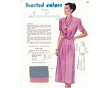Maisonette was a product of the Ward-Stilson Company of Anderson, Indiana, which had been in business since 1889. They produced men?s shirts under the Stilson label and women?s house dresses under the Maisonette label.Originally sold in department stores, by 1926 Maisonette Frocks were sold by direct sales only. Women were hired to act as sales representatives for the company. For a short time in the early 1930s, there were even Maisonette cosmetics.The company appears to have closed around 1960.Written by Lizzie Bramlett, Fuzzy Lizziie8 oe by 11 glossy page with a gorgeous clothing item shown as made with the included fabric swatches. See photos for all details.