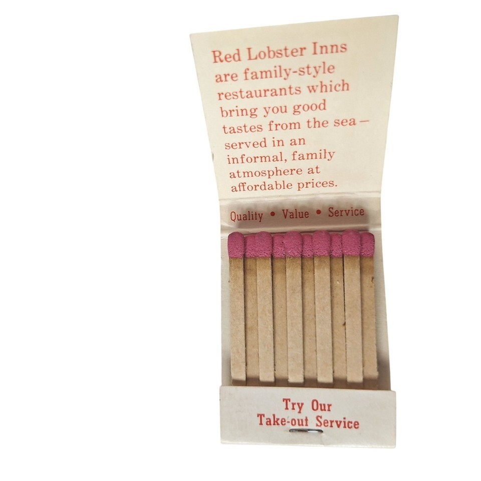 - Vintage Matchbook Red Lobster Sea Food Restaurant White Front Strike Advertising