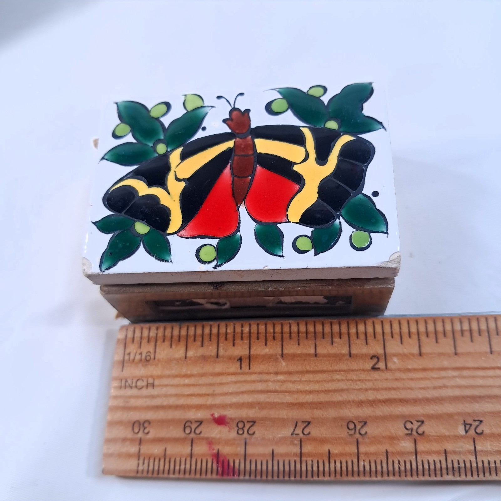 - Vintage Matchbox Match Holder butterfly moth Ceramic Tile slip case storage