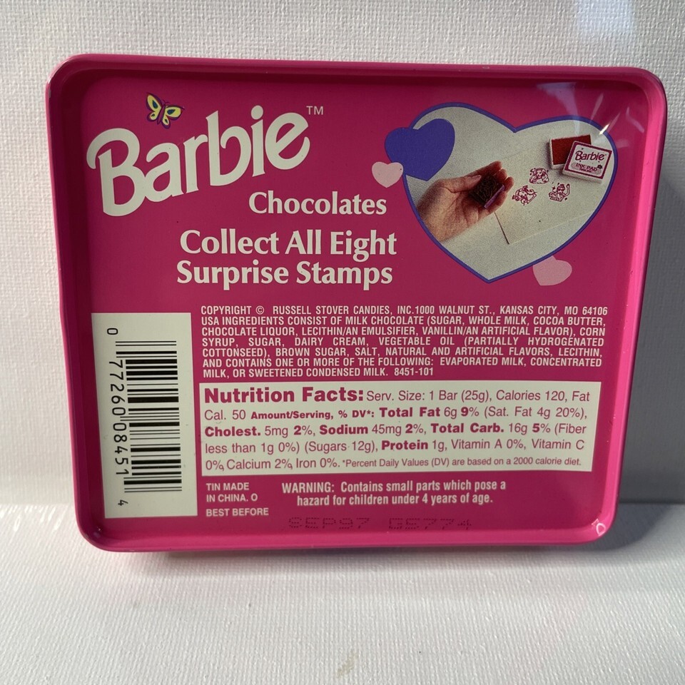 - Vintage Mattel Barbie Russell Stover Candy Tin 1997 #2 Small Dent Approx 4”x4”