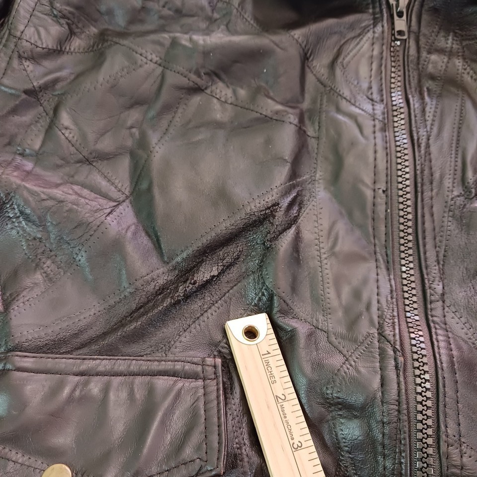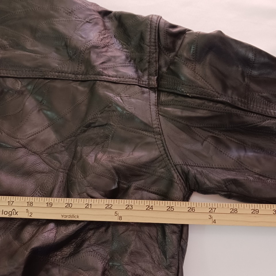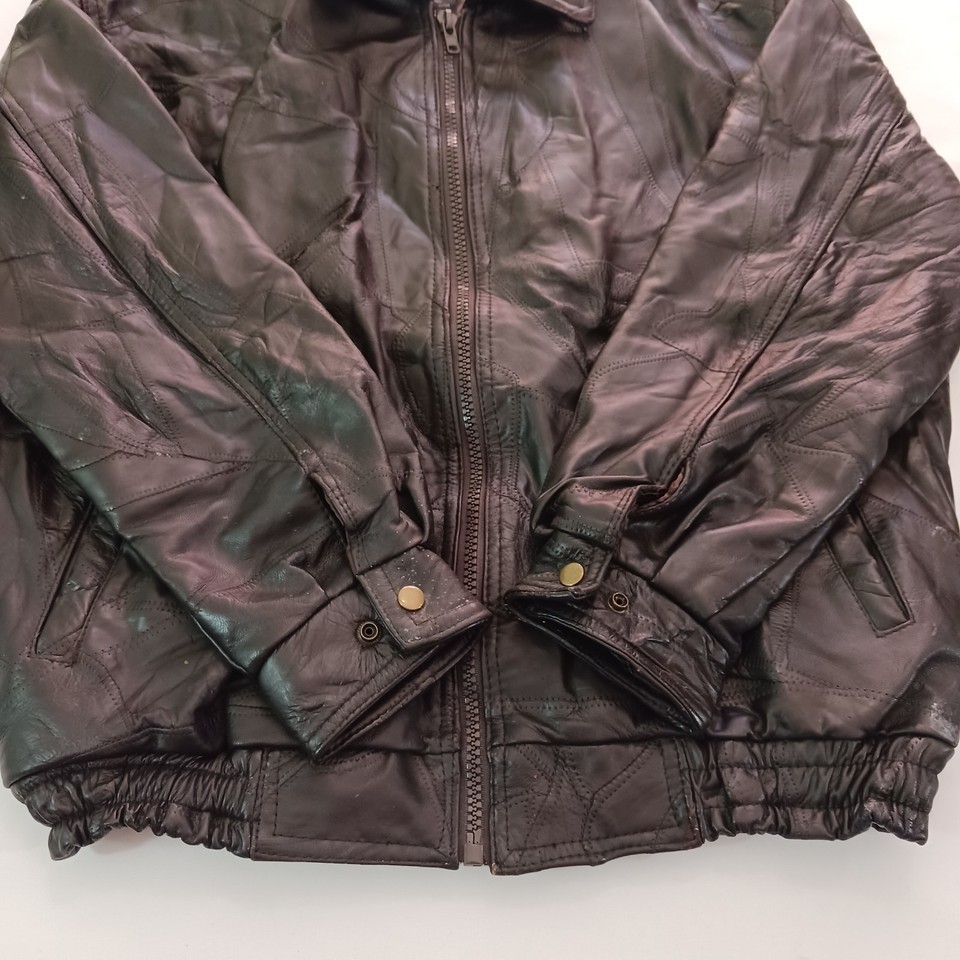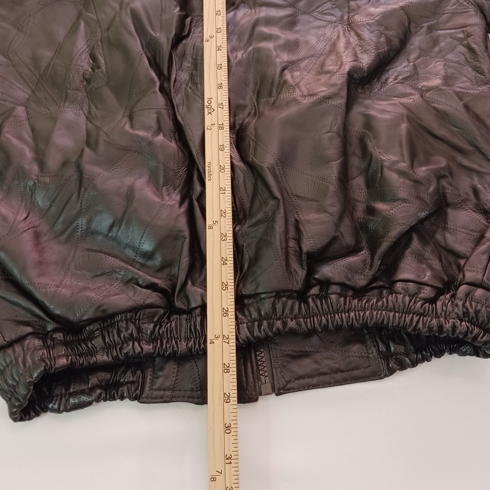 Embrace the classic appeal of a Vintage Maxam Brand Men's Brown Genuine Leather Jacket, tailored for a comfortable fit in size XL. Crafted from high-quality top grain lambskin, this bomber jacket is a testament to timeless style and durability. It features a distinct animal print pattern that adds a touch of individuality to your wardrobe, complemented by a sophisticated beaded accent.
