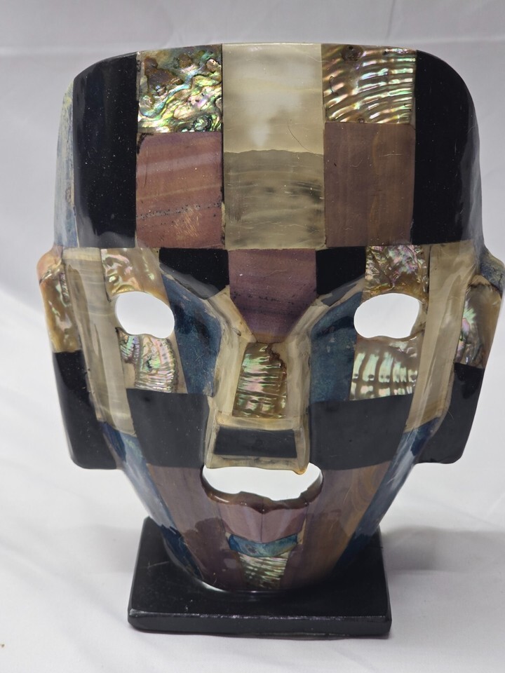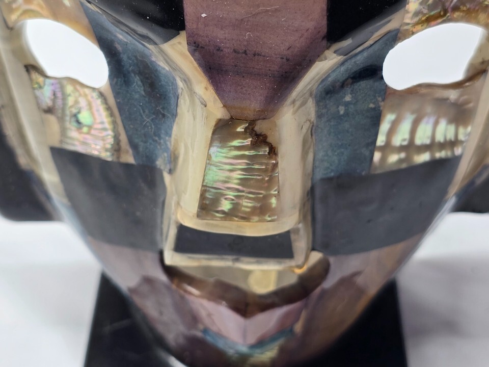 Vintage Mayan Aztec Death Burial Mask Semi Precious Stone Turquoise Pearl Onyx