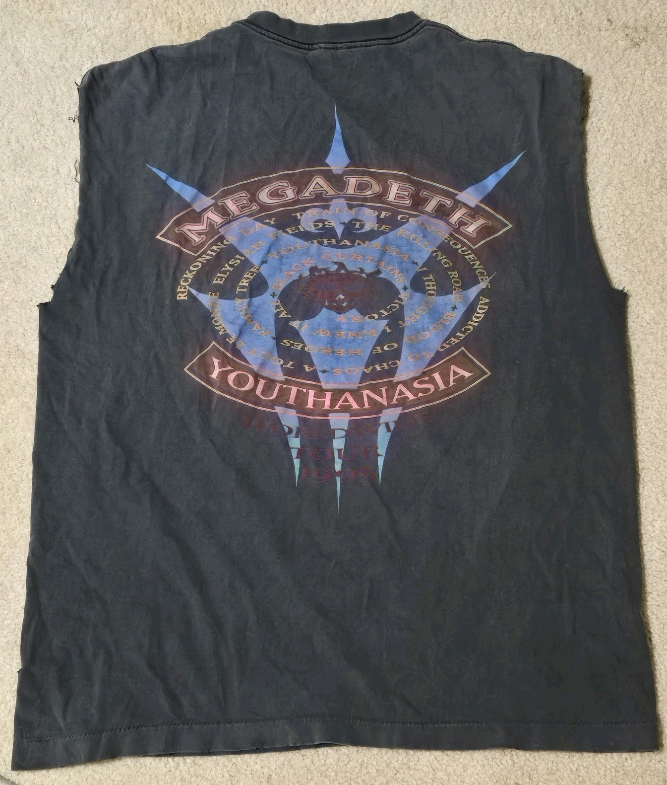 - Vintage Megadeth Youthanasia 1995 World Tour T-Shirt Cutoff Sleeves Metal Band T