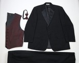 - Vintage Mens 46L 4 Piece Wool Satin Striped Tuxedo Suit Bow Tie Vest Black 41x29
