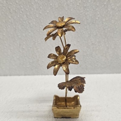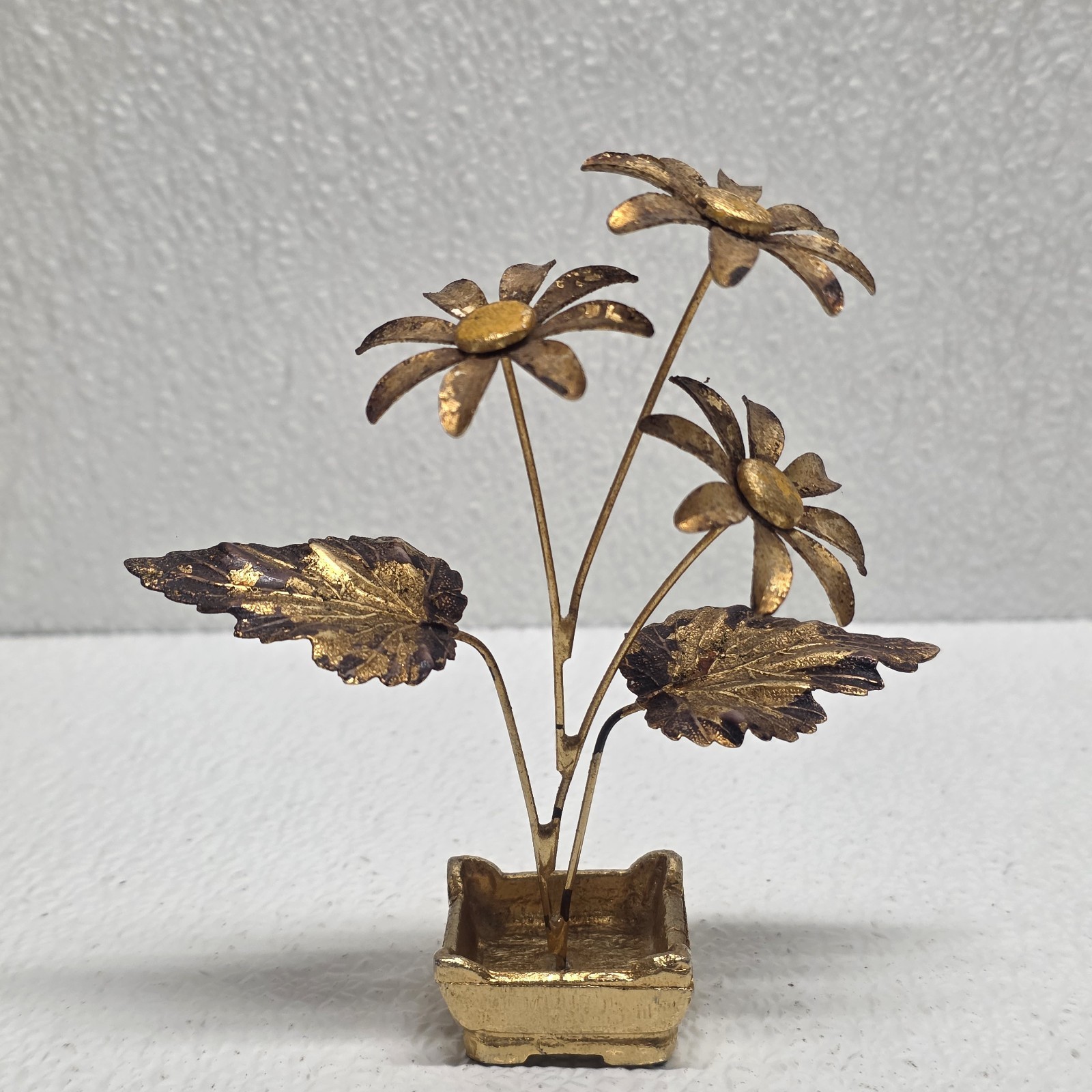 - Vintage Metal Gold Tone Flower Daisy Statue