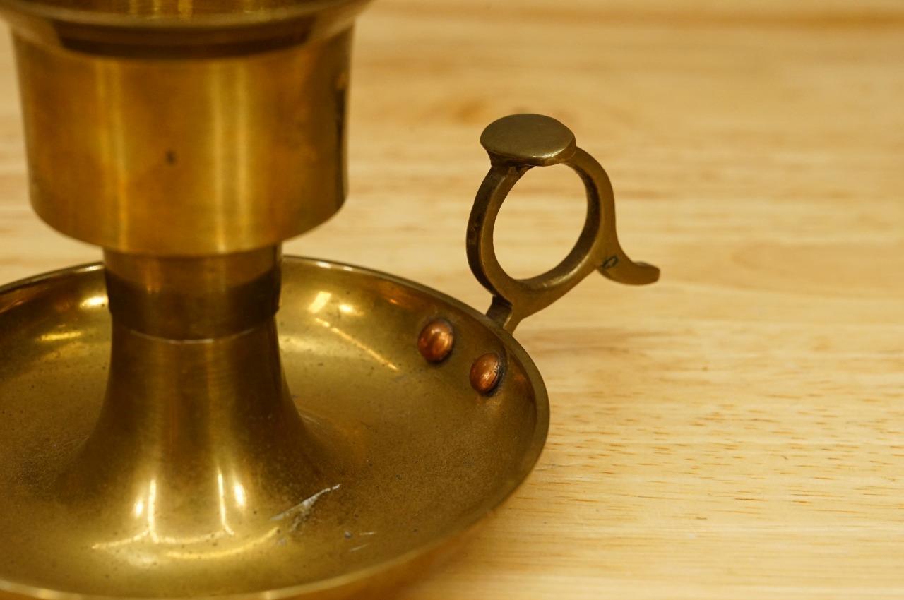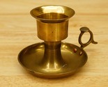 Vintage Metalware Solid Cast Brass Round Taper Candleholder Chamberstick. 3.0" tall. Thumb loop. Made in India