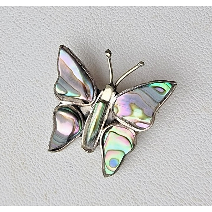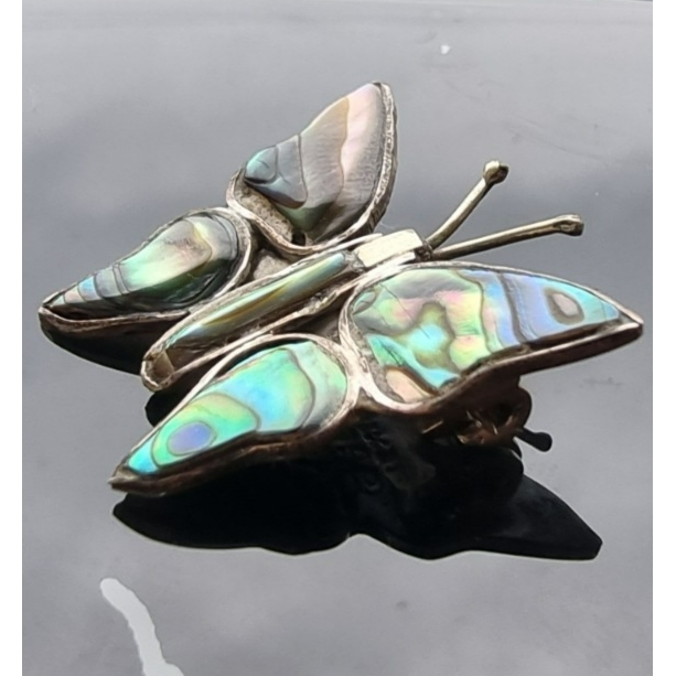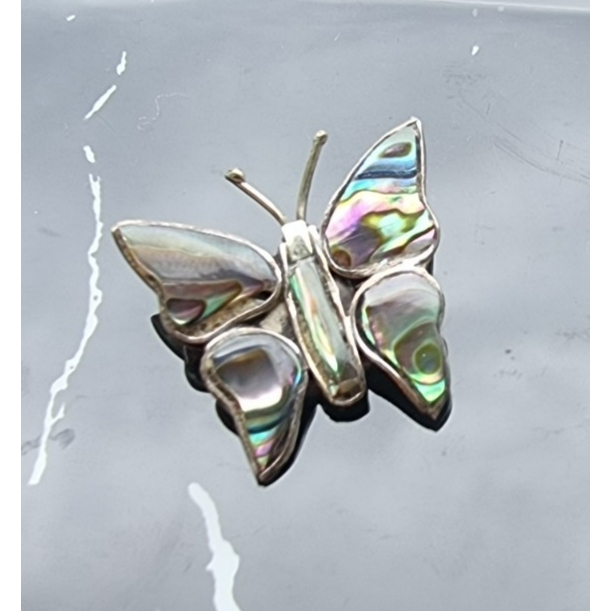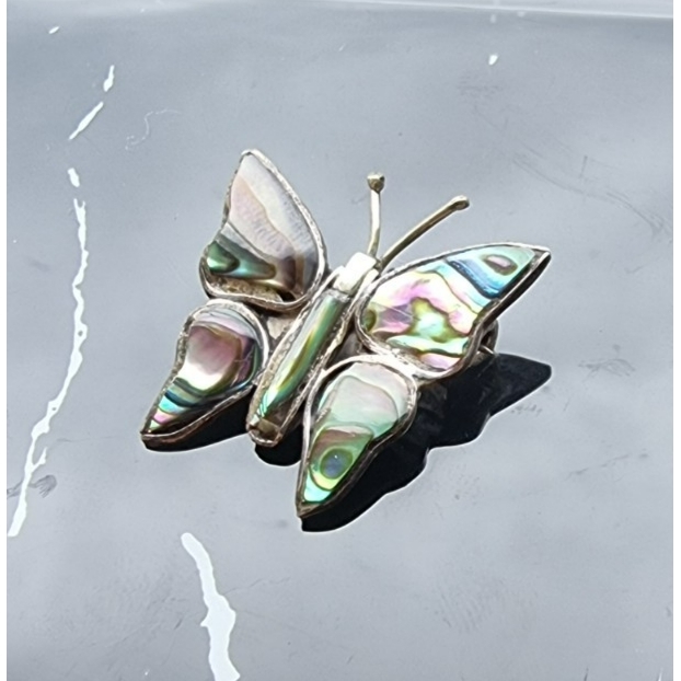 - VINTAGE MEXICAN 925 STERLING SILVER MOTHER OF PEARL BUTTERFLY BROOCH PIN AT