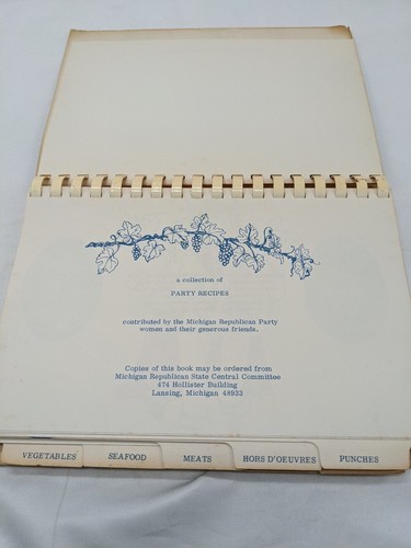 Vintage Michigan Republican Women's Party Cook Book. Combined Shipping (for USA Customers Only)