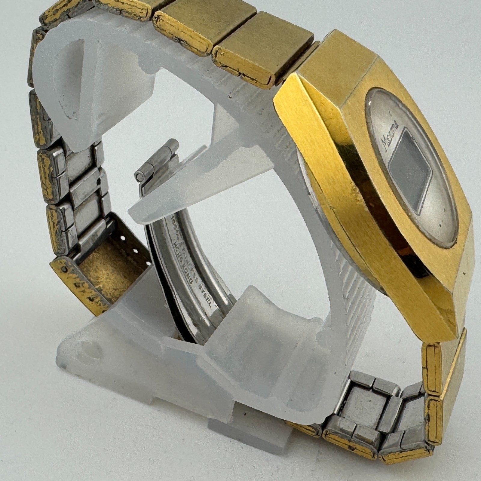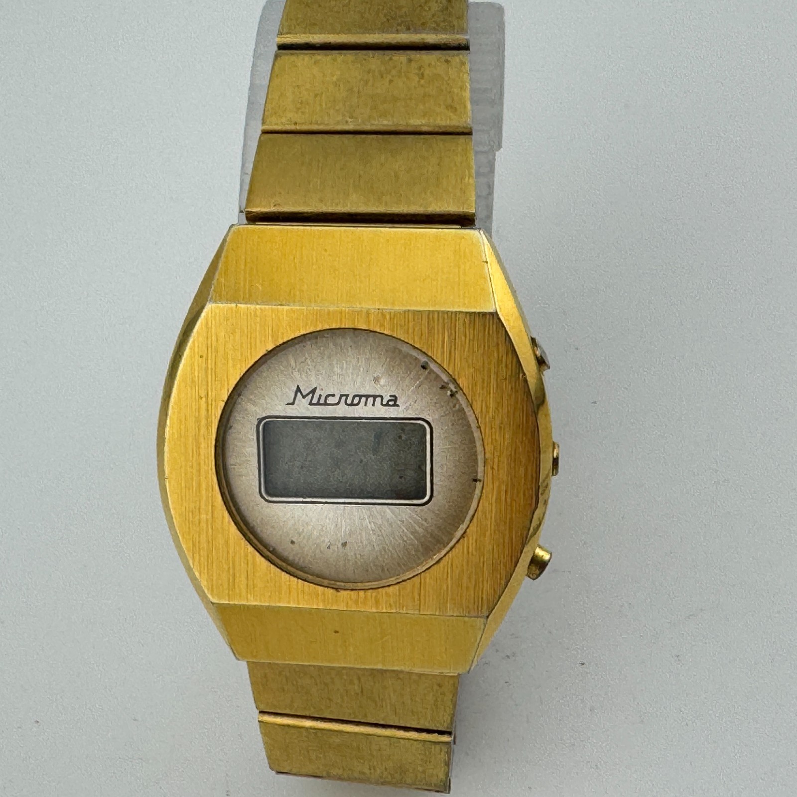- Vintage Microma Quartz Digital Watch Men Gold Tone Barrel ~ For Parts Repair