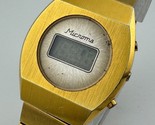 Vintage Microma Quartz Digital Watch Men Gold Tone Barrel ~ For Parts Repair