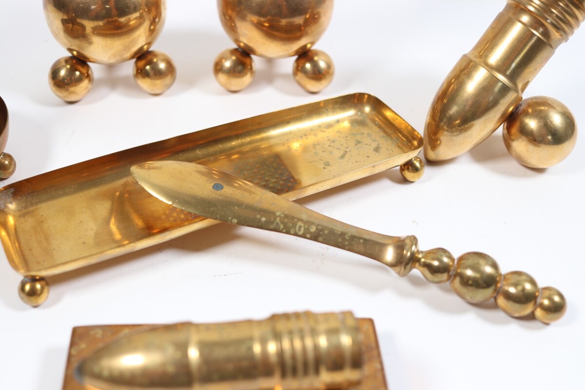 - Vintage Mid Century Art Deco Brass Sweden Gusums Bruk Office Desk Holders Tray