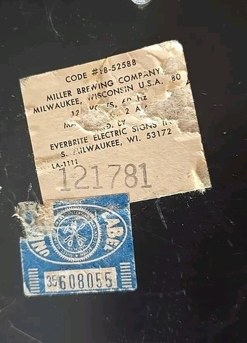 Label on backside reads ~ Miller Brewing Company ~ #121781 (More is printed ~ missing some of the label)