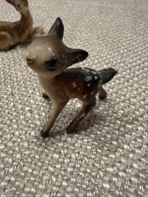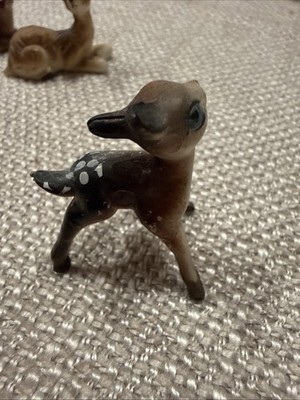 This lot of 4 vintage miniature deer figurines would be a charming addition to any collection of farm and countryside-themed decor. Each figurine depicts a deer in a unique and detailed design, perfect for animal lovers and collectors alike. These small figurines would be cute displayed on a shelf or tabletop, adding a touch of whimsy to any space.