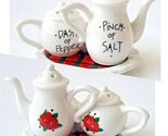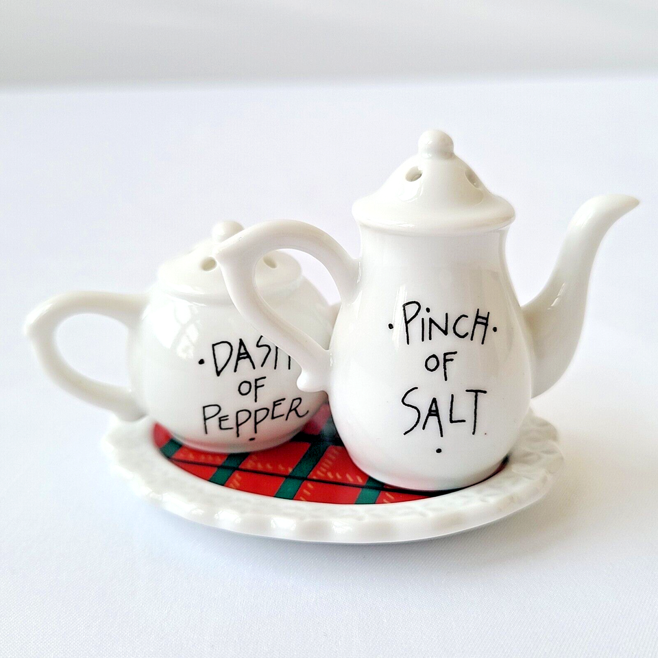 - Vintage Miniature Porcelain Tea Pot Salt & Pepper Shakers On Tray Double Sided