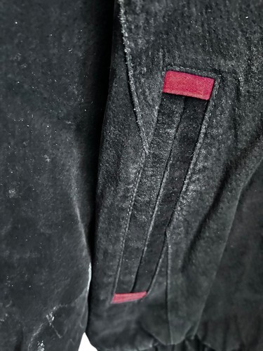 This is a beautiful jacket made of suede. As you may know, suede is hard to clean when any type of substance gets on it. This jacket if I were keeping it would take it to the dry cleaners and get this done professionally. I believe it will come out perfectly. I do not know what the marks are on it but as you can see in the pictures they are NOT too terrible. This is a 25 year old suede jacket that is considered a collectible item that is just awesome to the eye. You can wear it now, but I think it should get a professional dry cleaners touch. The price is factoring in about a $20-$30 dollar dry cleaner fee. Enjoy!