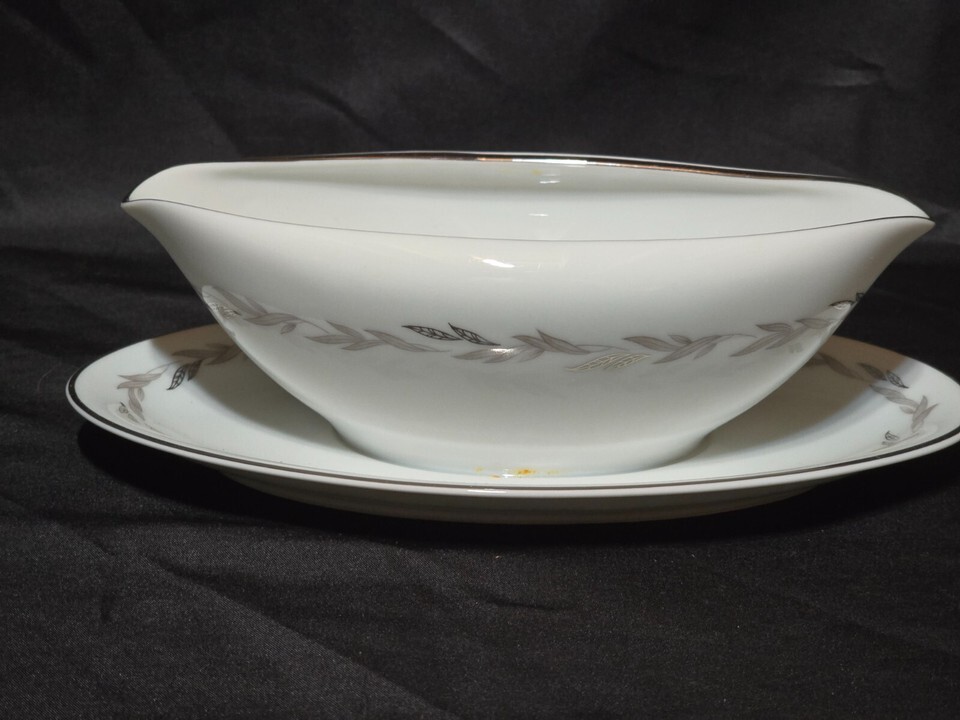 - Vintage NORITAKE GRAYWOOD Gravy Boat With Attached Underplate - Circa 1960 Japan