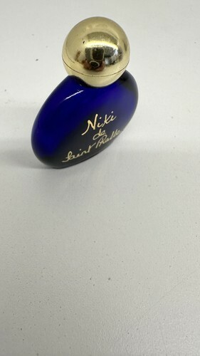 This vintage Niki de Saint Phalle perfume bottle is a stunning addition to any collection. The cobalt blue color and miniature size make it a unique piece that is sure to catch the eye. The bottle is empty, but it still has a beautiful and timeless appeal.