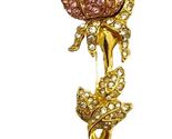 - Vintage Nolan Miller Pink Pave Rose Brooch Crystal Gold Tone Pin Rhinestones