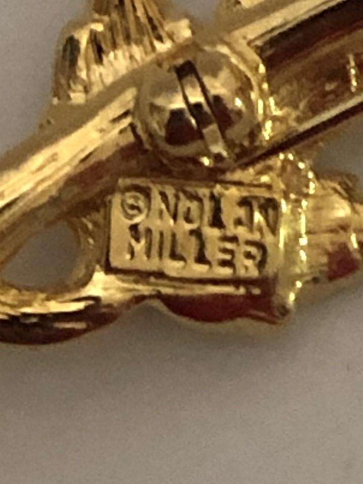 This beautiful vintage Nolan Miller brooch features a pink pave rose design with sparkling crystal rhinestones. The gold tone metal adds a touch of elegance to any outfit, making it perfect for any occasion. The brooch measures 3.5 inches in length and is signed by the designer. Whether you're looking for a unique addition to your jewelry collection or a special gift for someone special, this Nolan Miller brooch is sure to impress.