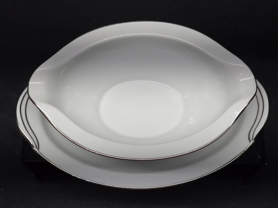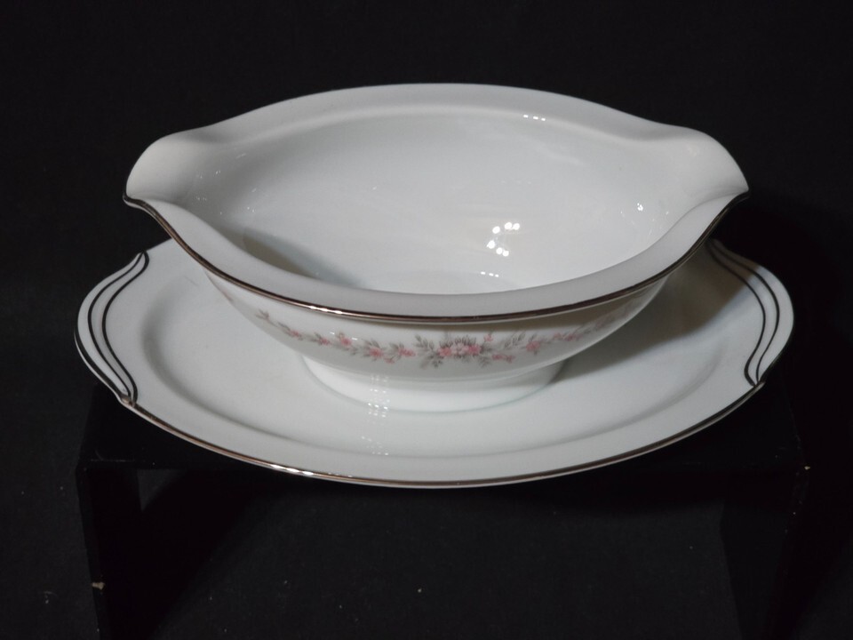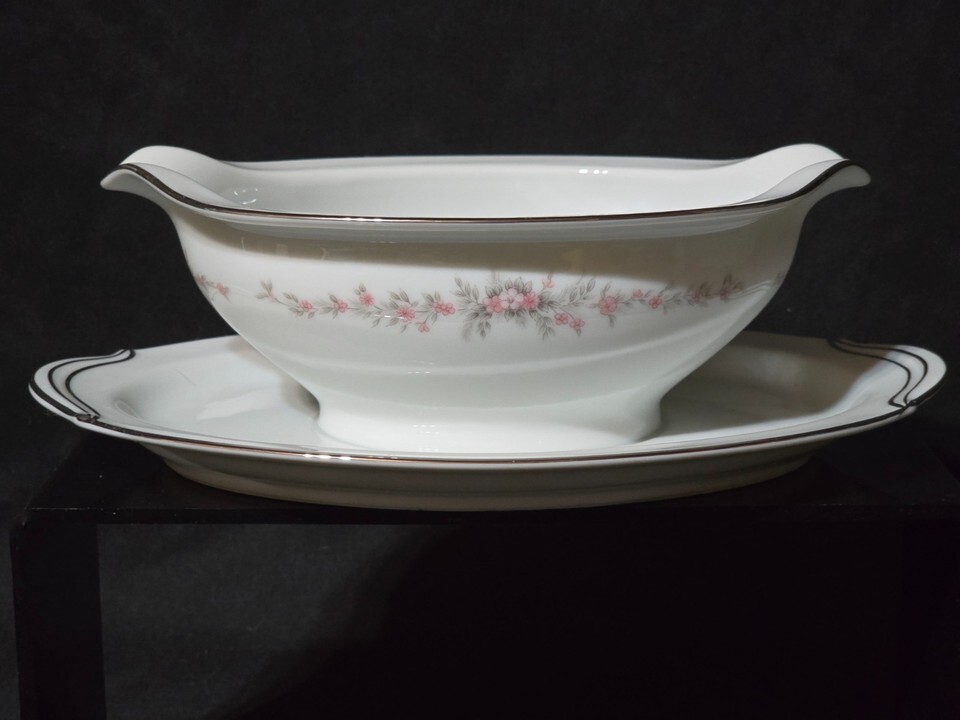 - Vintage NORITAKE Gravy Boat With Attached Underplate ROSEPOINT Platinum Trim