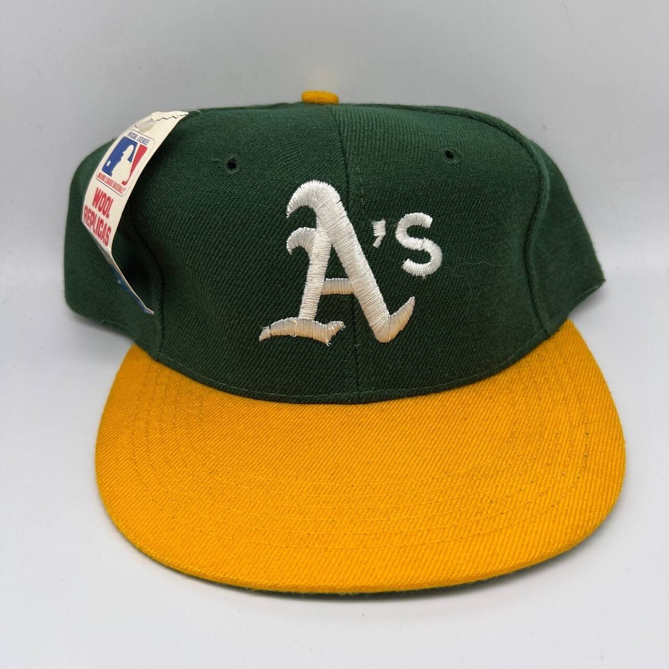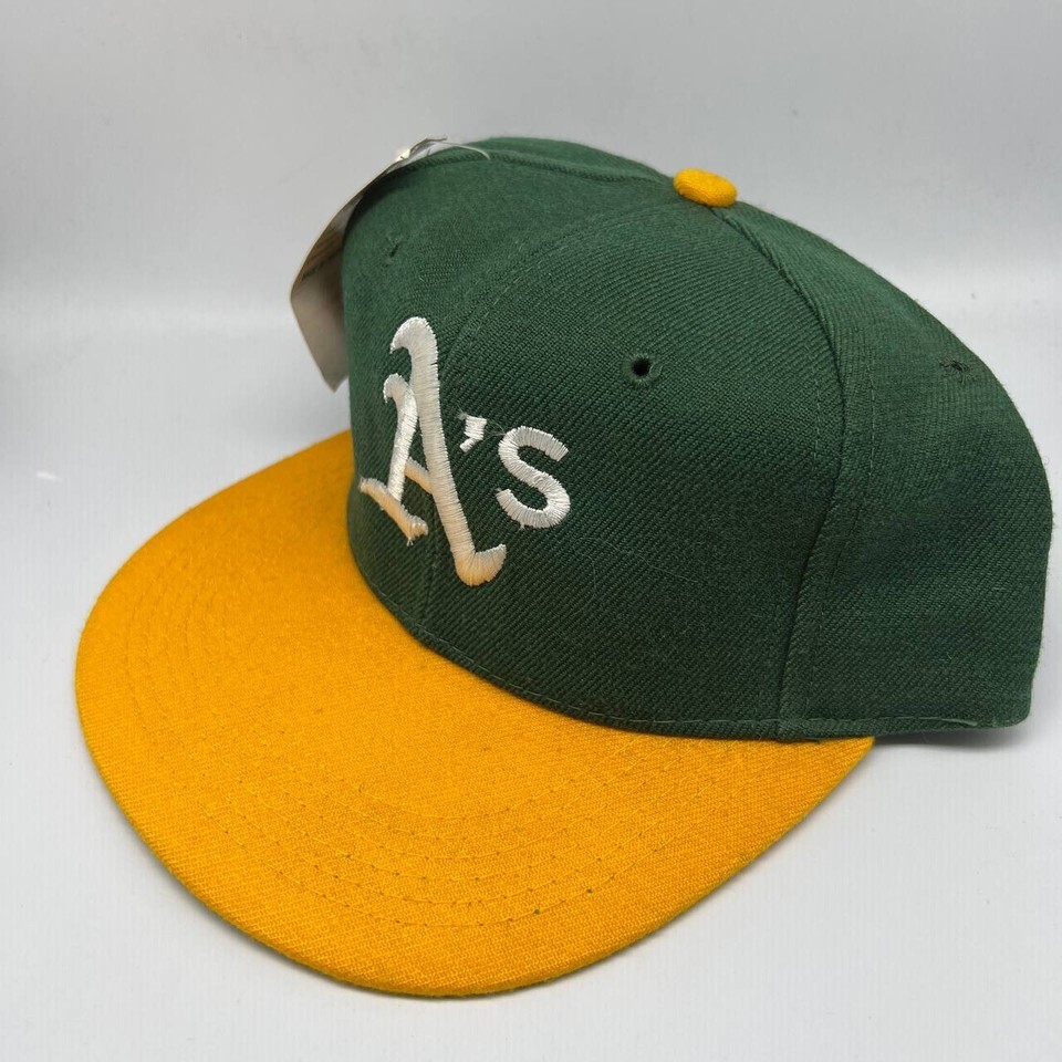 - Vintage Oakland Athletics Hat Youth Green Yellow MLB Snap Back Cap Wool New