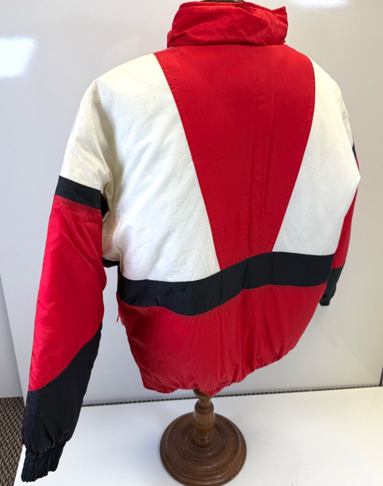 Vintage Ohio State Buckeyes Logo 7 Half Zip Puffer Coat Jacket Mens Sz XL. Shows some minor wear, but very good overall condition ? does have one small hole approximately .25 inches in diameter near the bottom side of one of the sleeves (Shown in photos). Please see all photos. Photos include measurements for armpit to armpit and top of shoulder to bottom of jacket.